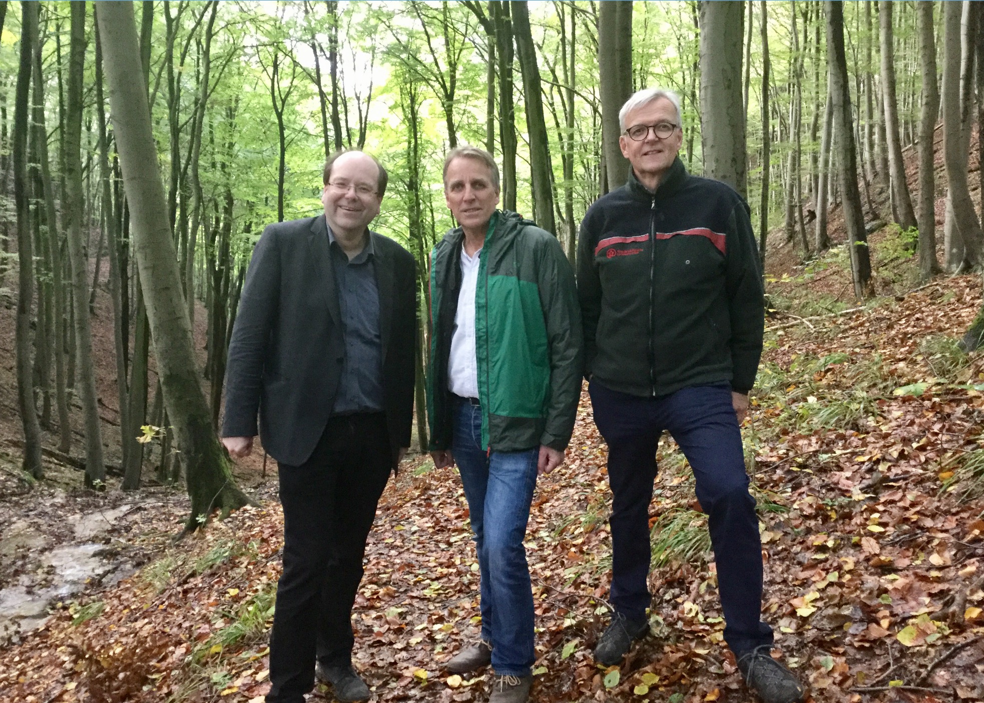HANNOVER/HESSISCH-OLDENDORF. Der Wald wird wilder in Niedersachsen. Auf insgesamt rund 33.000 Hektar und damit 10 Prozent der Landeswald-Fläche wird es künftig keine Pflegemaßnahmen und keine Holzernte mehr geben, sodass sich nach und nach Naturwälder entwickeln können. So hatte es kürzlich die Landesregierung beschlossen. Die größte zusammenhängende Naturwald-Fläche außerhalb des Nationalparks Harz wird mit rund 1.300 Hektar im Süntel entstehen, somit auch von der Größe her ein echtes „Wildnisgebiet“. Forstminister Christian Meyer und Umweltminister Stefan Wenzel machten sich heute (Dienstag) im Forstamt Oldendorf selbst ein Bild von den Naturwaldflächen, die nun im Zuge des Landesprogramms zur Natürlichen Waldentwicklung (NWE-10) erweitert werden. Begleitet wurden sie von Dr. Klaus Merker, dem Präsidenten der Niedersächsischen Landesforsten (NLF), sowie Ricky Stankewitz vom Landesvorstand des NABU.