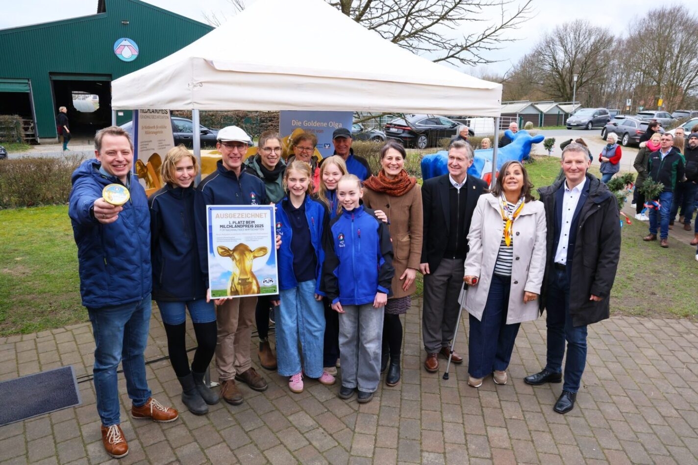 Der Milchkuhbetrieb hat es an die Spitze der mehr als 7.000 Milcherzeugerinnen und Milcherzeuger in Niedersachsen geschafft. Offiziell ausgezeichnet als Milchlandpreis-Gewinner 2025 wurde Familie Diers auf einer Festveranstaltung im November 2025 mit einer kleinen Kuh-Statue.