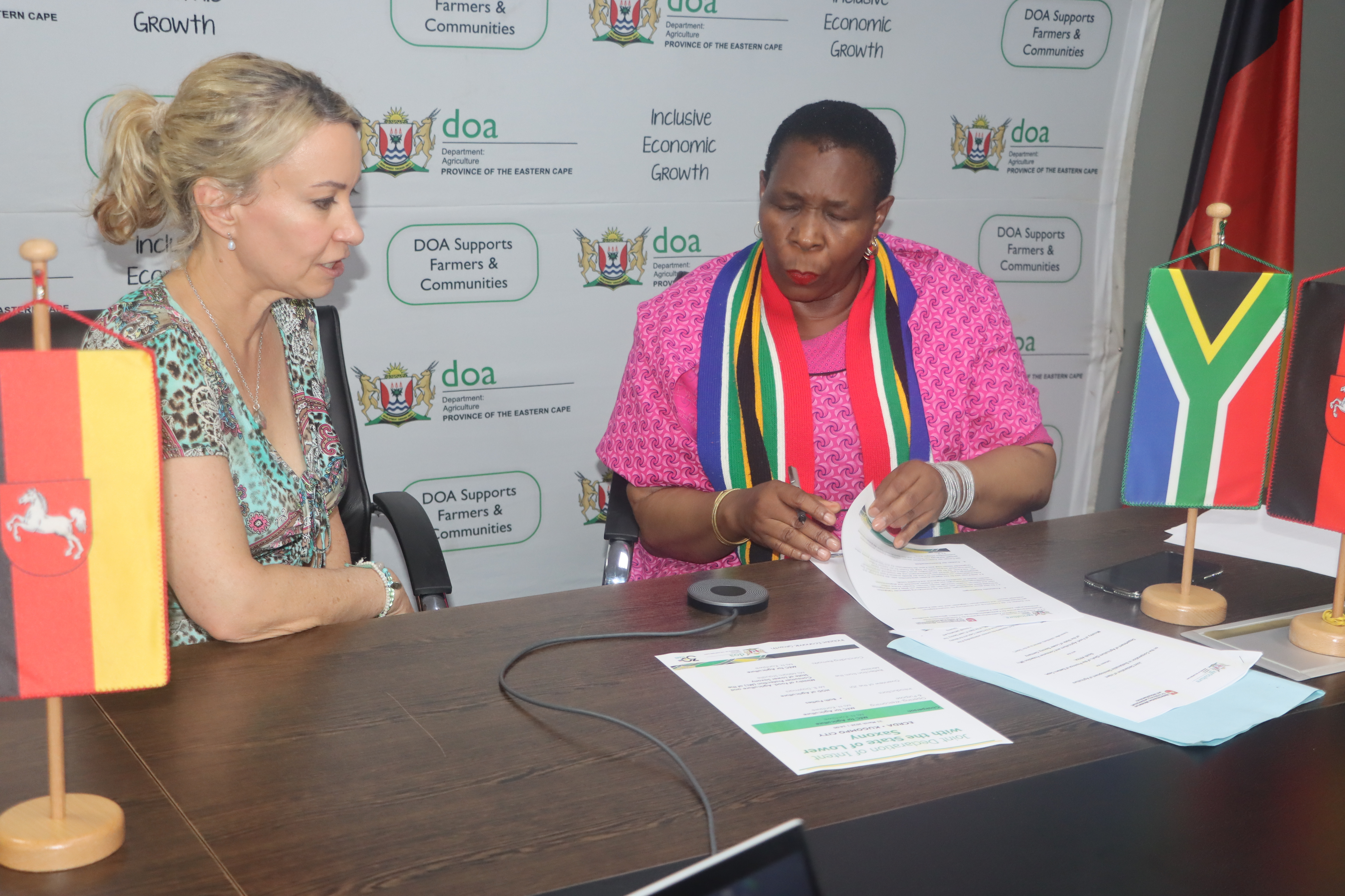 Eine gemeinsame Absichtserklärung haben jetzt Landwirtschaftsministerin Miriam Staudte und ihre Amtskollegin Nonceba Kontsiwe vom Department of Agriculture (DoA) der südafrikanischen Provinz Eastern Cape unterzeichnet. Die verstärkte Zusammenarbeit war jetzt auch Thema einer gemeinsamen Videokonferenz der beiden Ministerinnen.