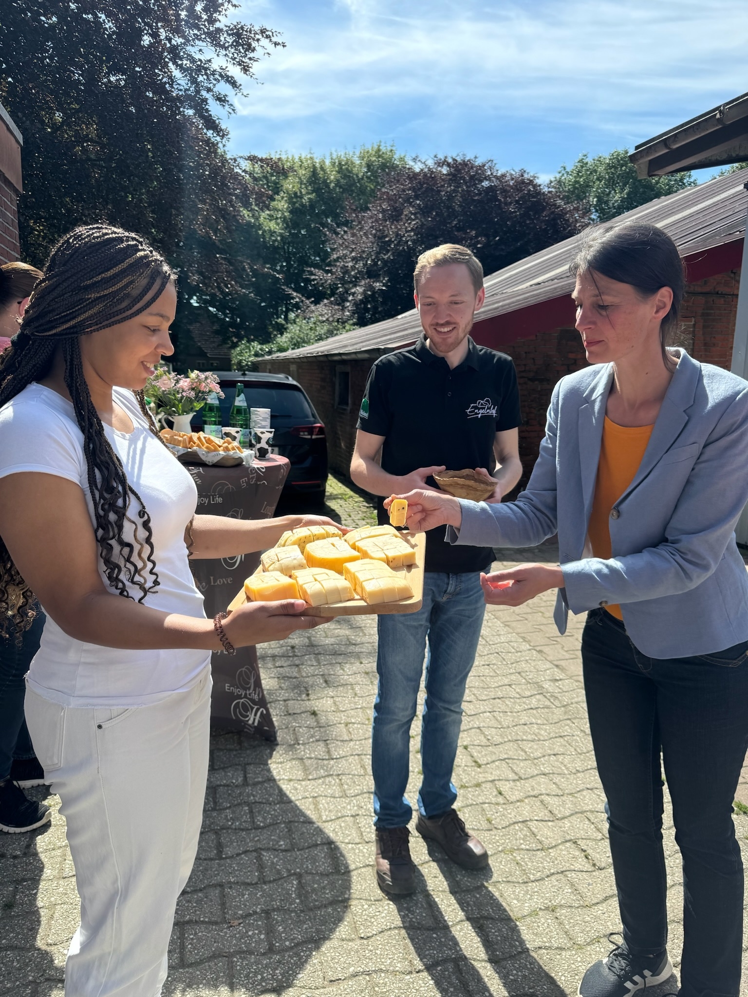 Die erste Station machte die Ministerin beim Engelnhof in Papenburg. Der Engelnhof ist ein ökologisch wirtschaftender Landwirtschaftsbetrieb mit Schwerpunkt Milchproduktion. Zu den weiteren Standbeinen gehören unter anderem eine Käseproduktion mit Direktvermarktung, eine erneuerbare Energieerzeugung sowie eine Bio-Hähnchenmast. Insgesamt hält der Betrieb 600 Rinder. Die Vermarktung läuft unter anderem auch über einen Online-Shop sowie Crowdfarming sowie Automaten und Hofläden in der Region. Der Hof betreibt auch eine Ökogasanlage und eine PV-Anlage zur Energiegewinnung. Ministerin Staudte: „Von der Kuhpatenschaft bis erneuerbaren Energieerzeugung – es ist beeindruckend, wie viele Standbeine sich das Unternehmen aufgebaut hat. Besonders spannend finde ich, dass auch eine Agri-PV-Anlage geplant ist. Die Inhaber gehen immer neue Wege und ergreifen Chancen, die sich im Zuge der sich verändernden Rahmenbedingungen ergeben.“