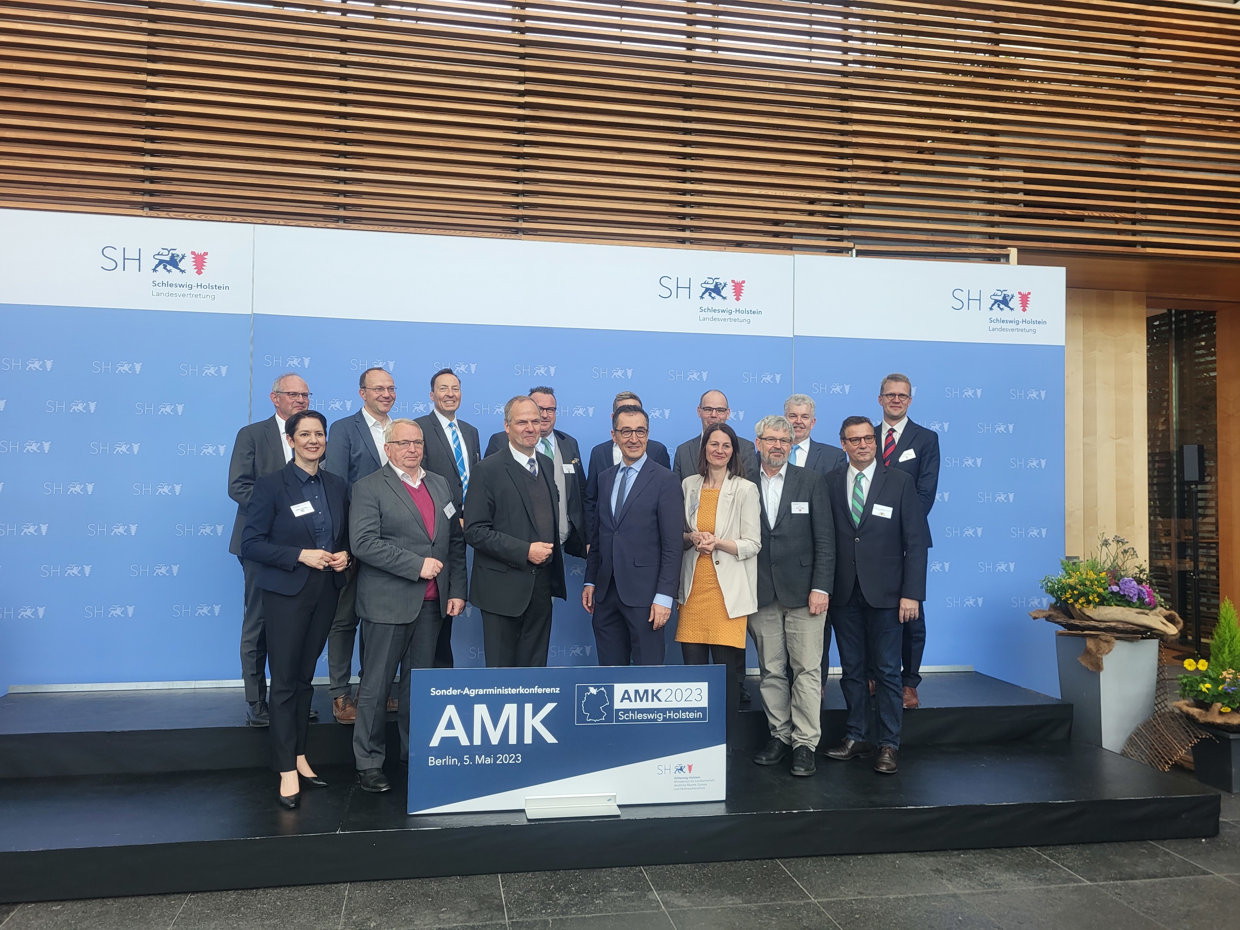Gemeinsamer Beschluss zum geplanten Umbau der Nutztierhaltung: die Agrarministerinnen und Agrarminister der Länder und des Bundes bei ihrer außerordentlich einberufenen Konferenz in Berlin.
