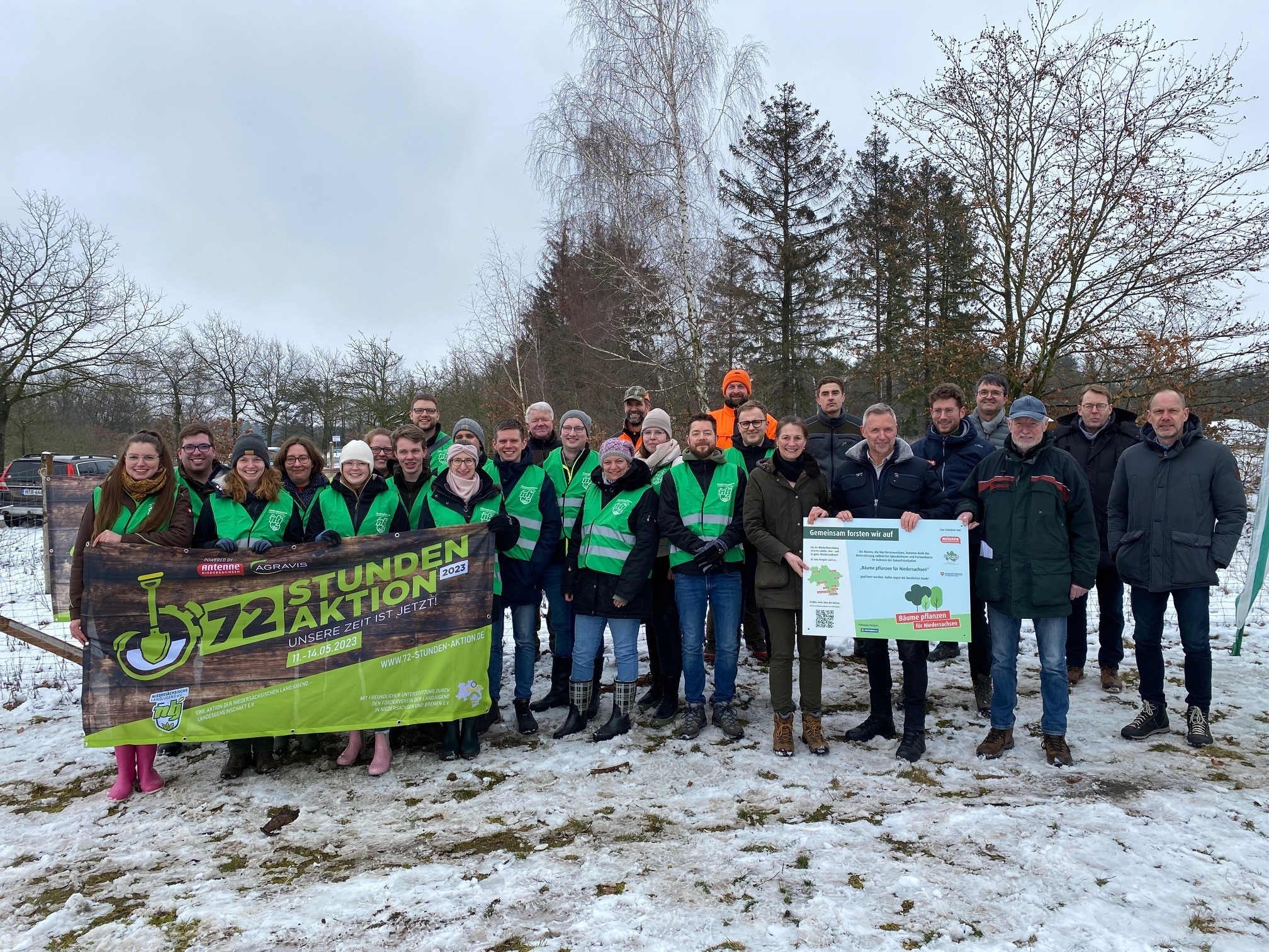 Diese Aufgabe übernahmen nun, gemeinsam mit Ministerin Miriam Staudte, Uelzens Bürgermeister Jürgen Markwardt, Antenne Niedersachsen Reporter und Moderator Daniel Flüß, sowie freiwillige Helfer:innen der Niedersächsischen Landjugend (u.a. der Landesvorsitzende Hendrik Grafelmann) – unter der fachmännischen Aufsicht von Stadtförster Thomas Göllner.