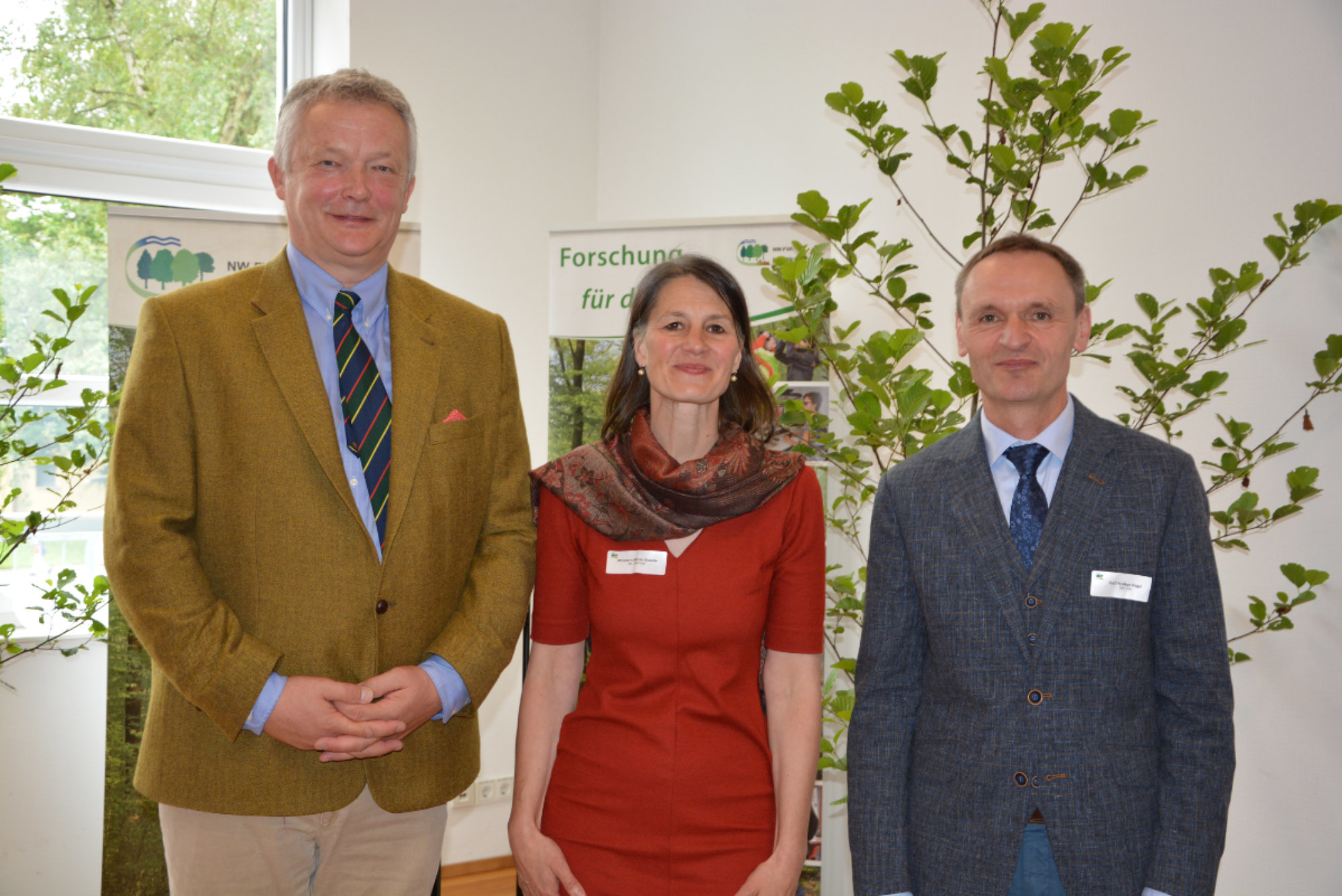 Forstministerin Miriam Staudte (Mitte) mit dem neuen Leiter der Nordwestdeutschen Forstlichen Versuchsanstalt Ralf-Volker Nagel (rechts) und Dr. Thomas Böckmann (links)