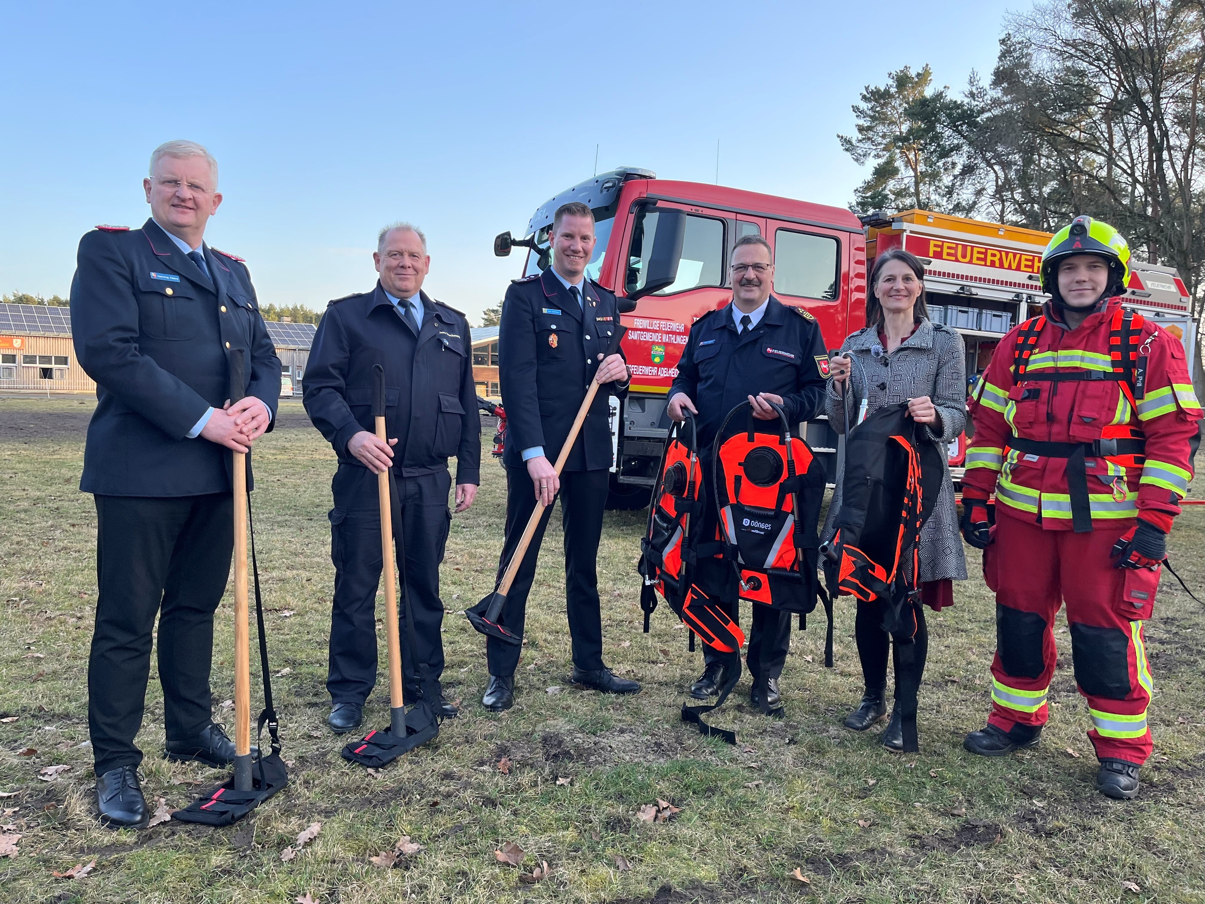 Forstministerin Miriam Staudte: „Die Zusammenarbeit zwischen meinem Haus und dem Landesfeuerwehrverband Niedersachsen verläuft nun schon seit mehr als drei Jahren sehr erfolgreich und stößt über die Landesgrenzen hinaus auf Interesse. Bis zum Jahr 2028 stellt mein Ministerium Mittel in Höhe von 165.000 Euro für die Aufklärungskampagne ‚Waldbrand‘ zur Verfügung. Ich freue mich sehr, dass wir die Feuerwehren in gefährdeten Gebieten mit den Löschrucksäcken und Werkzeugen nun weiter sinnvoll ausstatten, um Waldbrände in ihrer Entstehung sofort effektiv bekämpfen zu können. Die Gegenstände stellen eine tolle Ergänzung zur üblichen Feuerwehrausrüstung und zu den neuen bereits beschafften Skid Units dar. Diese flexiblen Löschmodule hat mein Haus bereits im Jahr 2024 in Zusammenarbeit mit dem Innenministerium beschafft und ausgegeben.“