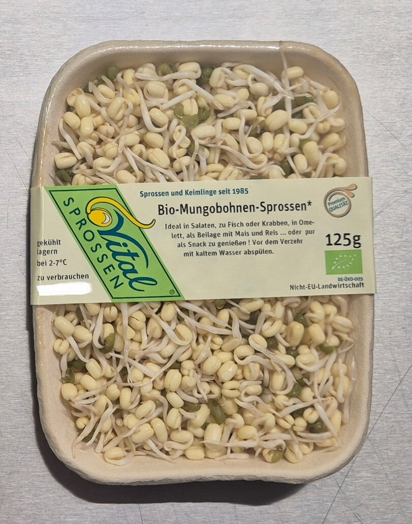 Der Rückruf betrifft die Produkte „Bio-Mungobohnen-Sprossen“ (125 Gramm), „Bio-Vitaspross-Mischung“ (100 Gramm und 500 Gramm) sowie „Bio-Gourmet-Mischung“ (125 Gramm) mit folgenden Lotnummern/Verbrauchsdaten: