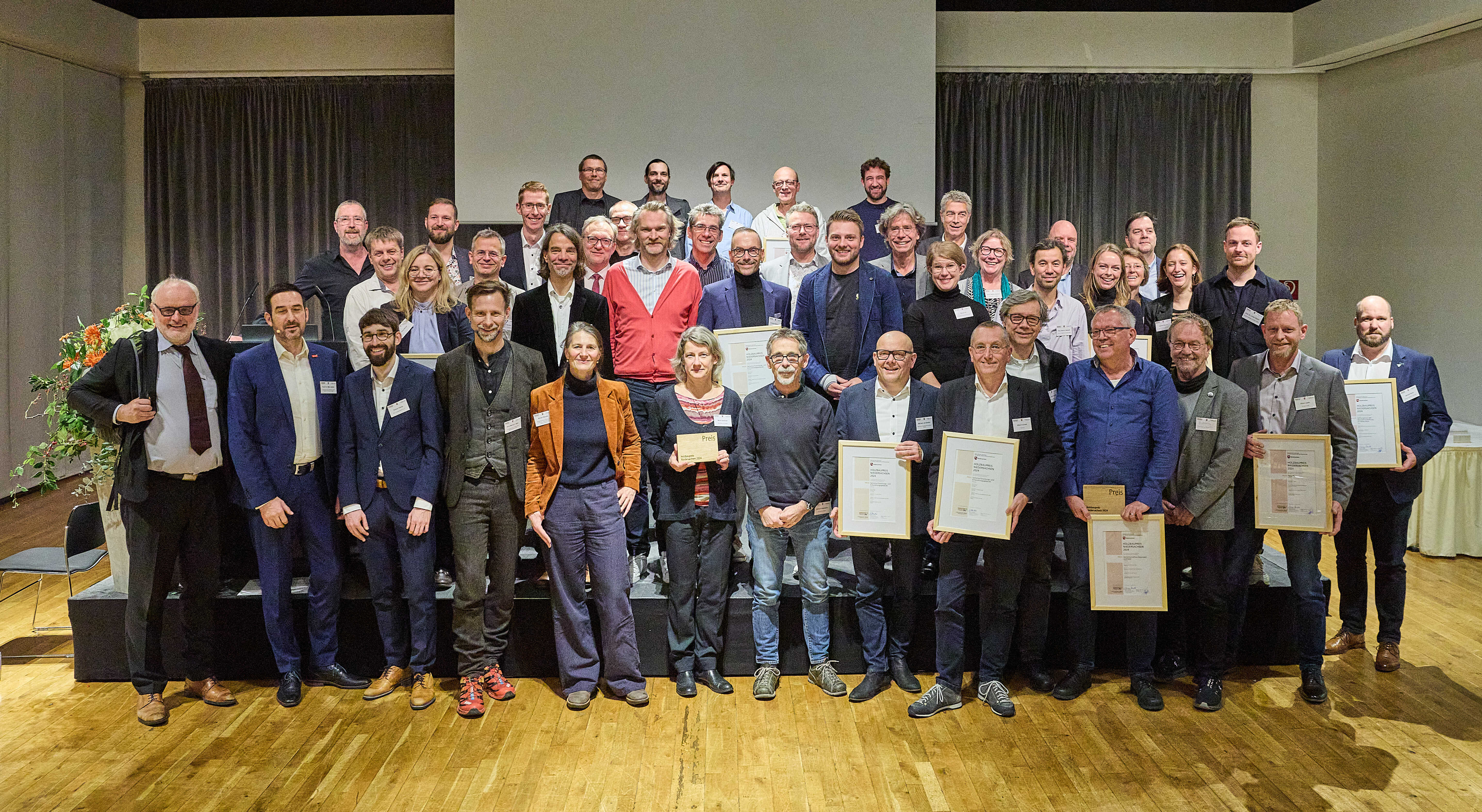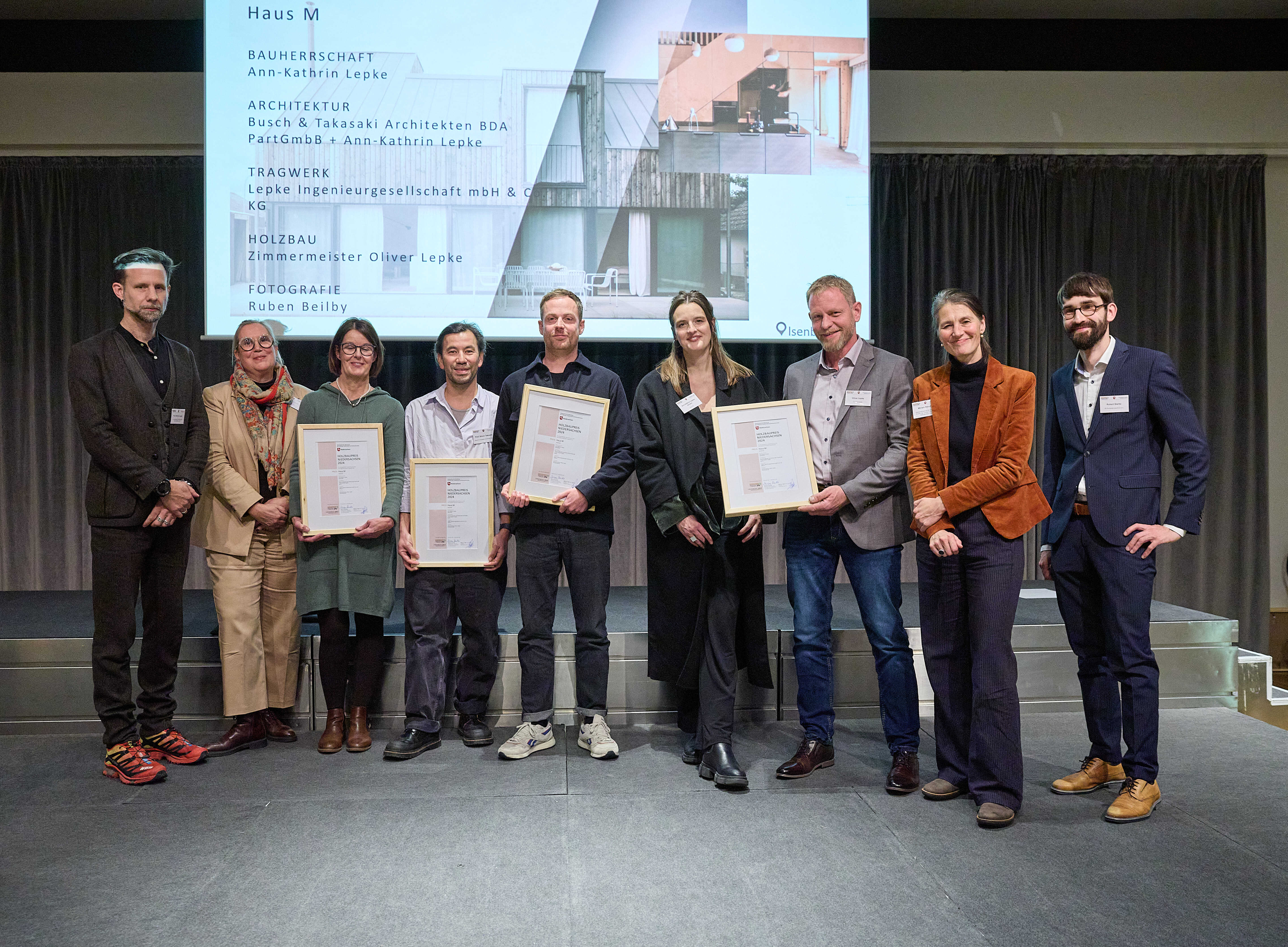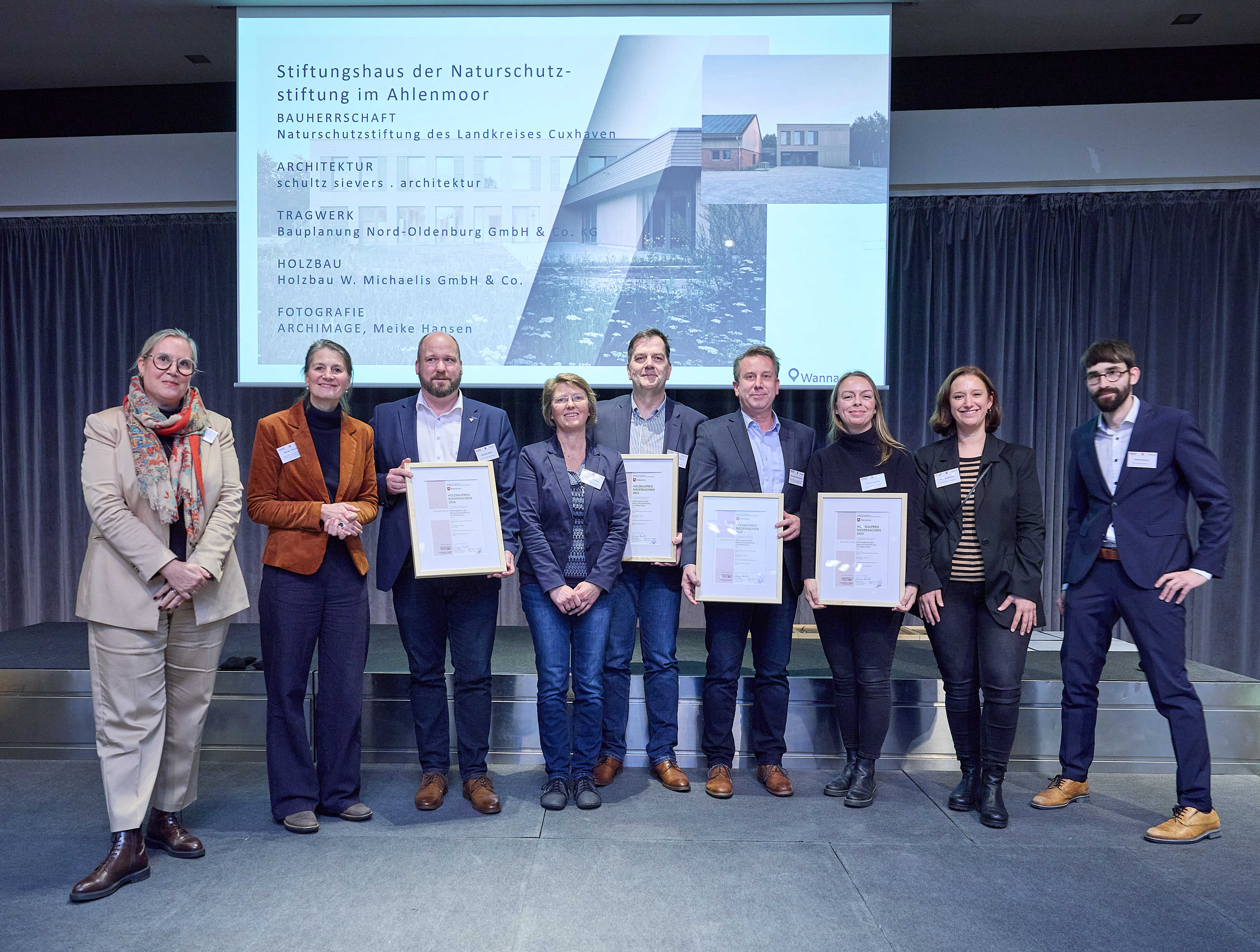 Aus insgesamt 26 Bewerbungen kamen acht Holzbauten in die engere Wahl. Neben den oben genannten Preisträgern wurden noch zwei Anerkennungen überreicht, und zwar an das Coppenrath Innovation Centre in Osnabrück und für die Aufstockung des Studentenwohnheims Hufelandstraße in Hannover.