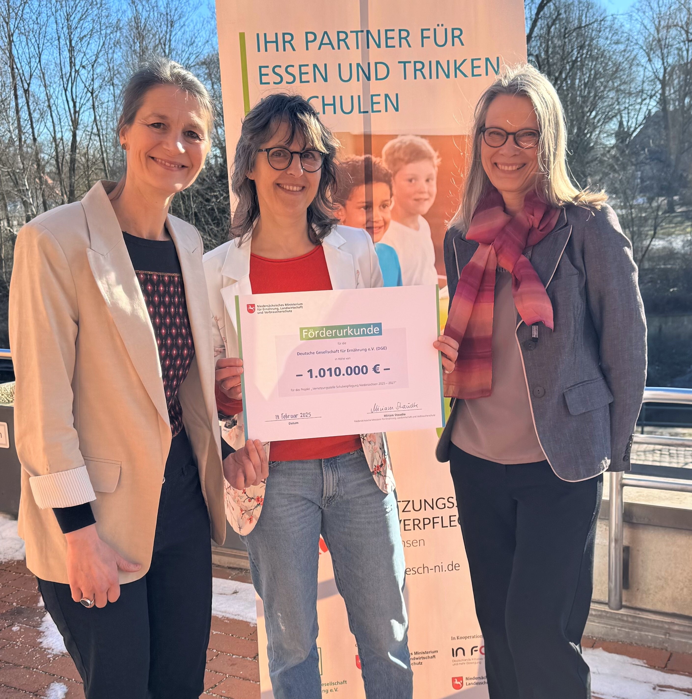 Die Vernetzungsstelle Schulverpflegung Niedersachsen (VNS) ist zentrale Anlaufstelle für fachliche und organisatorische Fragen rund um das Thema Schulverpflegung. In dieser Funktion organisiert sie Informationsveranstaltungen, Fachtagungen und Fortbildungen und berät Schulen, Schulträger und Verpflegungsanbieter. Zudem vernetzt sie die genannten Akteure der Schulverpflegung, wenn es um Qualität, Organisation und die Gestaltung einer zeitgemäßen, gesundheitsfördernden und nachhaltigen Schulverpflegung geht. Die Vernetzungsstelle befindet sich in Trägerschaft der DGE und wird durch das Niedersächsische Ministerium für Ernährung, Landwirtschaft und Verbraucherschutz (ML) gefördert (www.dgevesch-ni.de). Die Förderung des Verbraucherschutzministeriums beläuft sich in den Jahren 2025 und 2026 auf jährlich je 380.000 Euro und 2027 auf 250.000 Euro.