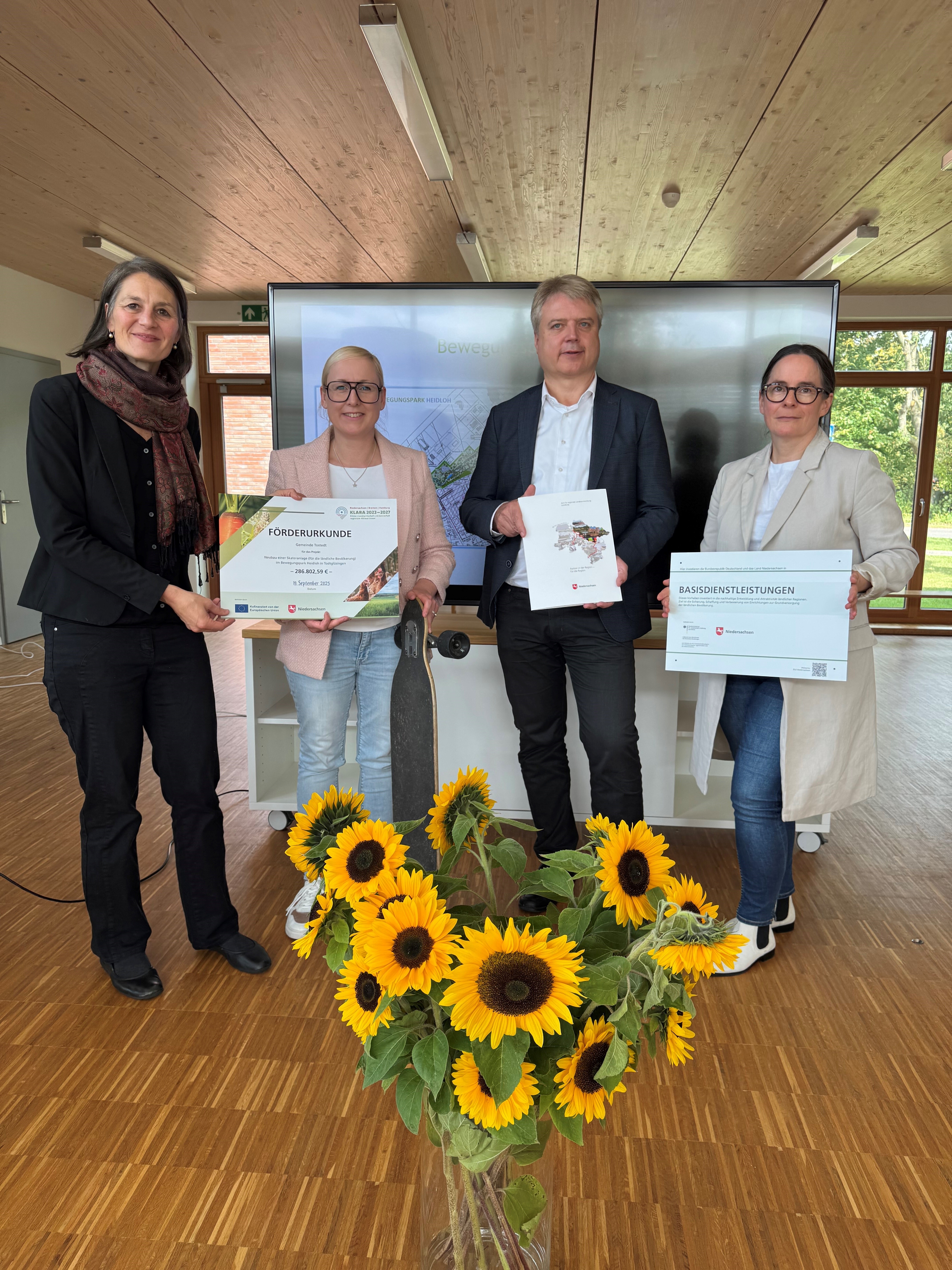 Auf einer großen Grünfläche im Neubaugebiet der Gartenstadt Heidloh soll eine neue Skateranlage gebaut werden. Dabei werden die Jugendlichen in Tostedt aktiv an der Planung beteiligt. Das Landwirtschaftsministerium fördert die Anlage mit 286.802,59 Euro im Förderbereich Basisdienstleistung.