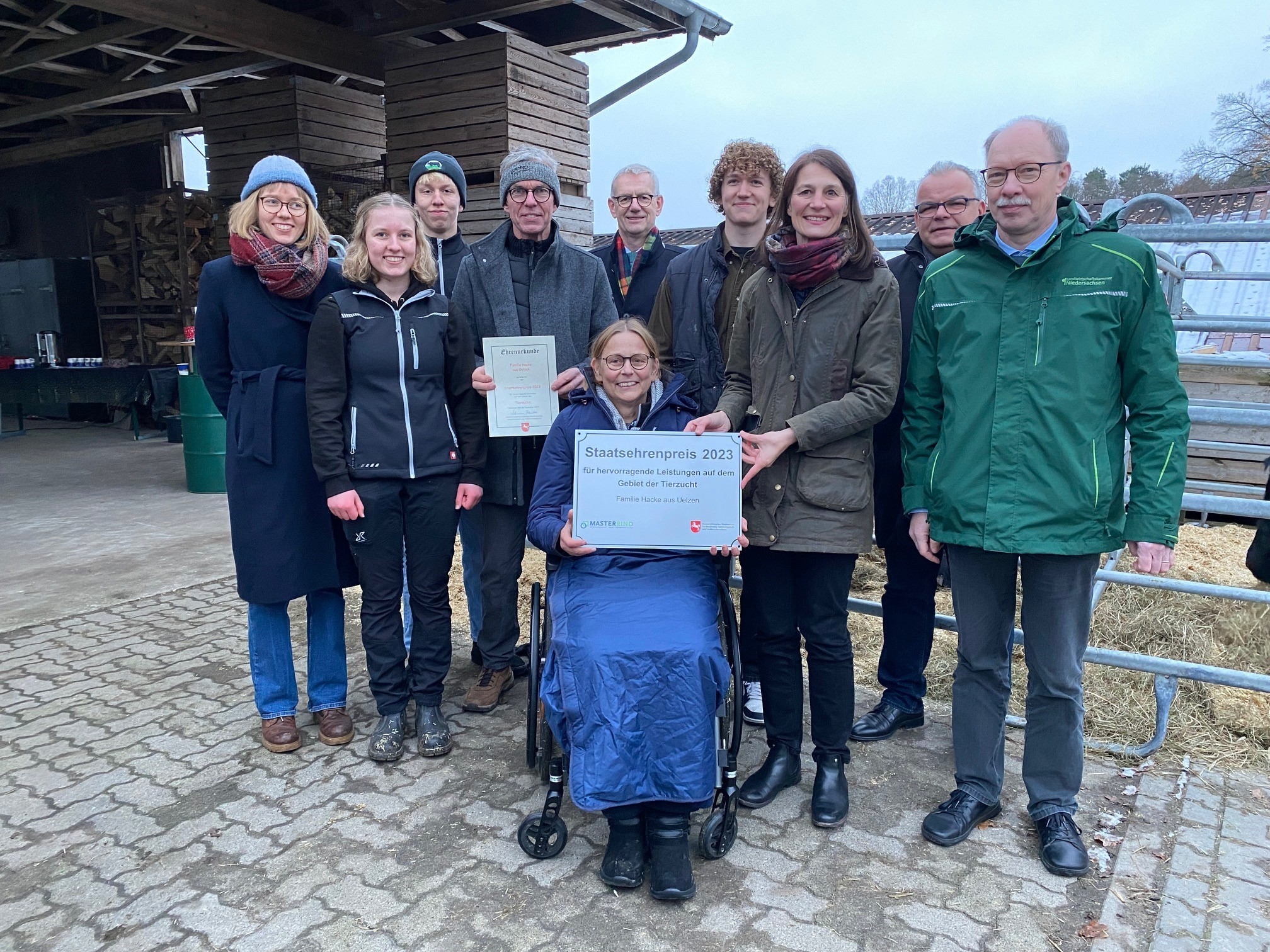 Hannover./Pieperhöfen. Familie Hacke aus Pieperhöfen (Landkreis Uelzen) züchtet auf ihrem Betrieb seit über 20 Jahren erfolgreich Fleischrinder der britischen Rinderrasse Welsh Black. Für die besonderen Leistungen auf dem Gebiet der Tierzucht überreichte Ministerin Miriam Staudte am heutigen Donnerstag den Niedersächsischen Staatsehrenpreis Tierzucht. Das Ehepaar Jörg und Marit Hacke, die gemeinsam mit Tochter Romy und zwei Auszubildenden im Schwerpunkt Ackerbau den Betrieb auf rund 350 Hektar bewirtschaften, hat sich der Fleischrinderzucht mit großer Kompetenz und überregionaler Anerkennung verschrieben.