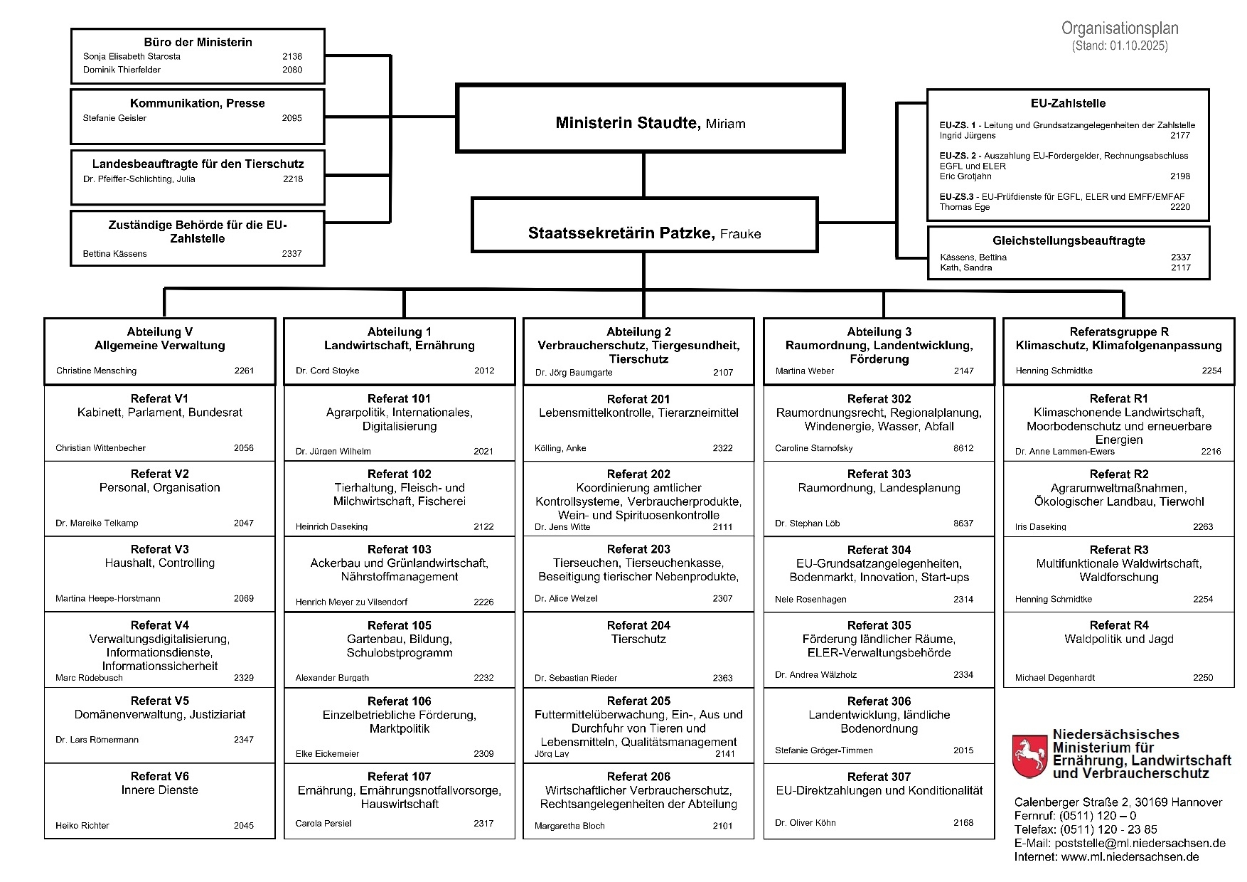 Organisationsplan des Niedersächsischen Ministeriums für Ernährung, Landwirtschaft und Verbraucherschutz