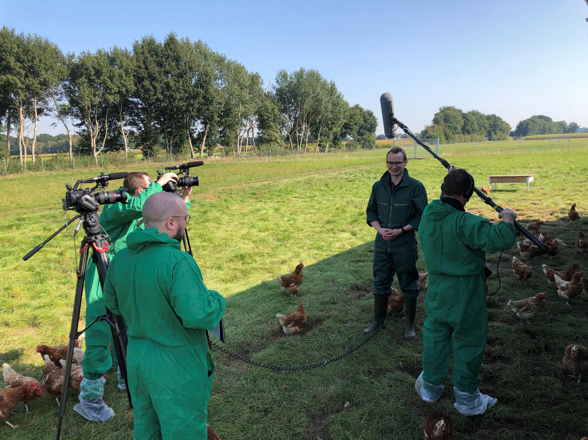 In der Landwirtschaft zeigen sich große Potenziale für die Zukunft – das weiß auch der Vertreter des Instituts Querfeld Group, Clemens große Macke, der auf die jungen Akteurinnen und Akteure seines Projekts besonders stolz ist. Sie haben erkannt, dass es in der Geflügelhaltung häufig ein konkretes Problem gibt: die mangelhafte Eiweißversorgung der Tiere. Das Projekt EVELIN ist entstanden, um die Eiweißversorgung von Legehennen in Niedersachsen zu erforschen. Dabei spielen die Larven der schwarzen Soldatenfliege eine große Rolle in der Ernährung der rund 600 Hühner in zwei mobilen Ställen im Landkreis Cloppenburg. Ein weiterer Mobilstall dient als „Null-Stall“, bei dem 300 weitere Tiere in Freilandhaltung herkömmliches Futter erhalten. Schon nach kurzer Zeit konnte festgestellt werden, dass die Legehennen mit einer erhöhten Eiweißversorgung gesünder und ihre gelegten Eier dementsprechend qualitativ hochwertiger sind. Als nächster großer Schritt steht im Rahmen des Projekts EVELIN die Entwicklung eines Prototyps zur automatisierten Fütterung von lebenden Larven im Mobilstall an.