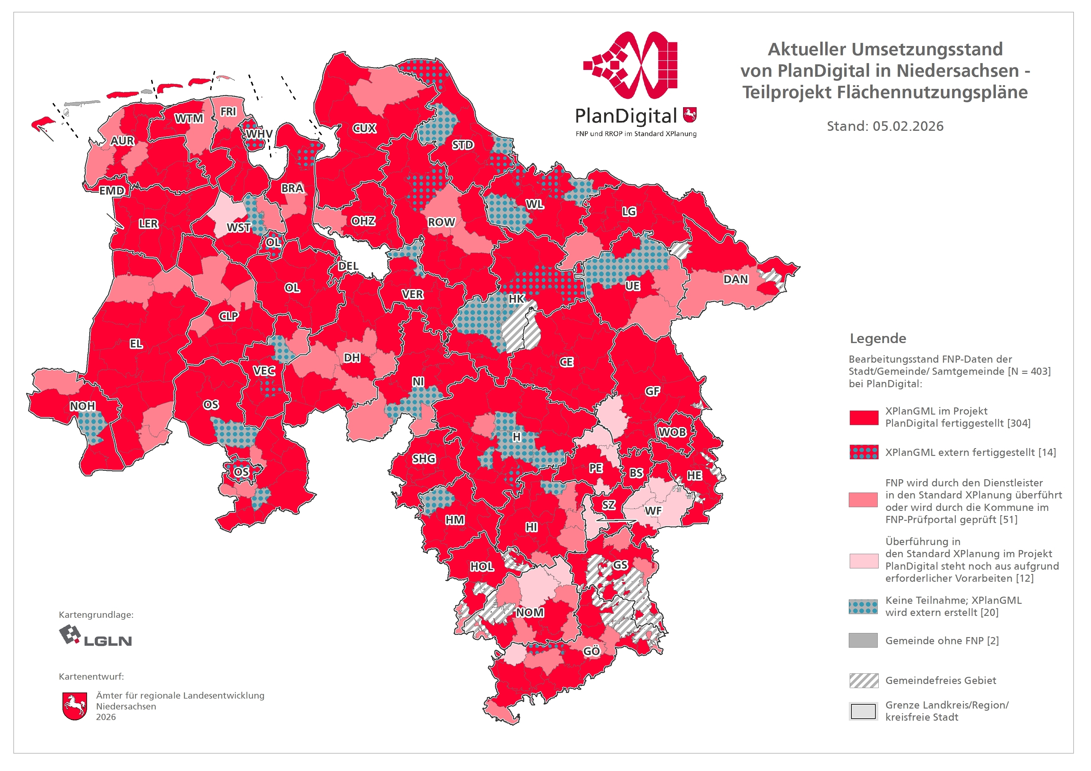 Ziel des Projektes PlanDigital ist es, die Regionalen Raumordnungsprogramme (RROP) und Flächennutzungspläne (FNP) landesweit digital im Standard XPlanung bereitstellen zu können und die niedersächsischen Kommunen für diese Planwerke bei der Einführung des im Jahr 2018 bundesweit eingeführten Standards „XPlanung“ zu unterstützen.