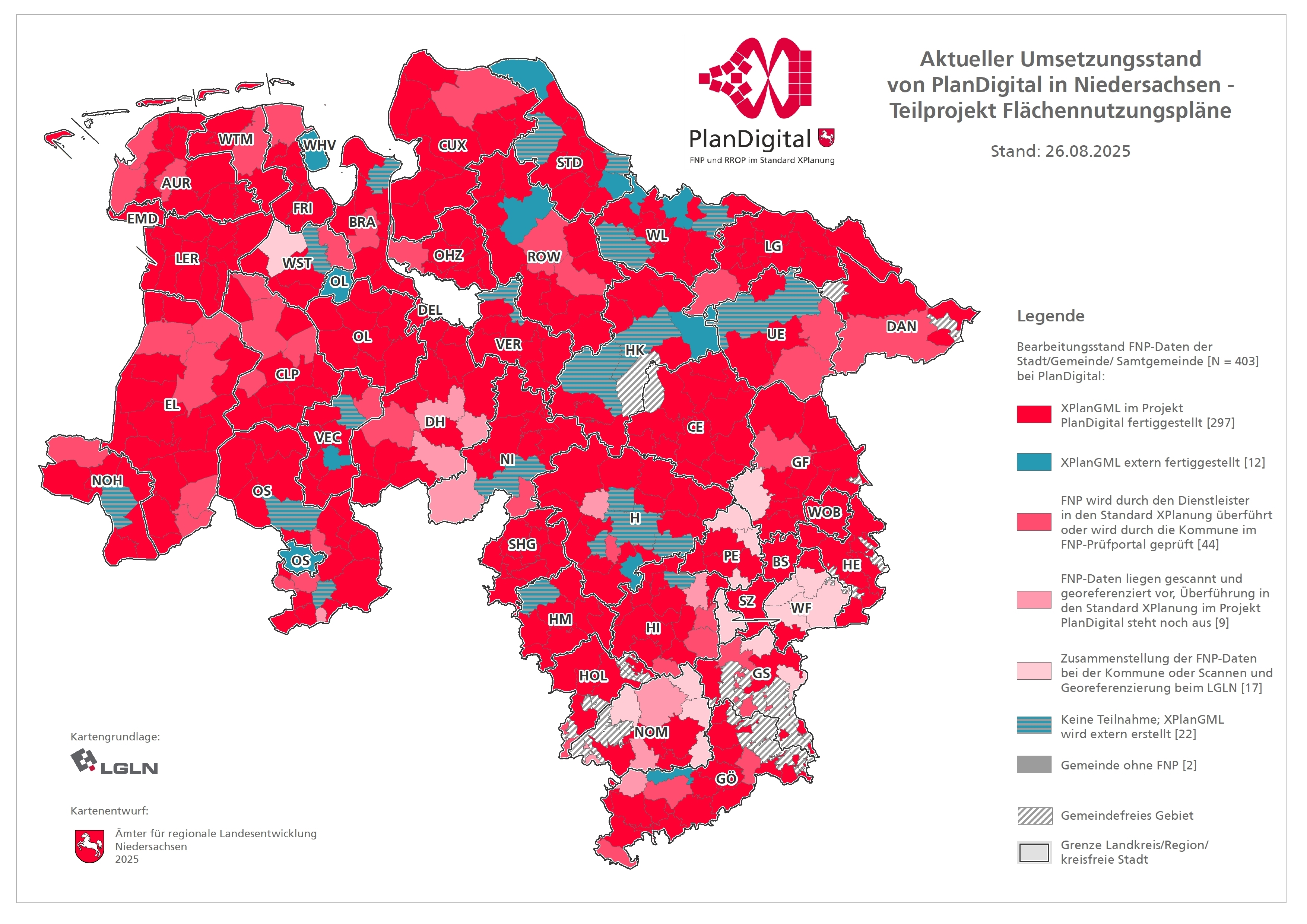 Ziel des Projektes PlanDigital ist es, die Regionalen Raumordnungsprogramme (RROP) und Flächennutzungspläne (FNP) landesweit digital im Standard XPlanung bereitstellen zu können und die niedersächsischen Kommunen für diese Planwerke bei der Einführung des im Jahr 2018 bundesweit eingeführten Standards „XPlanung“ zu unterstützen.