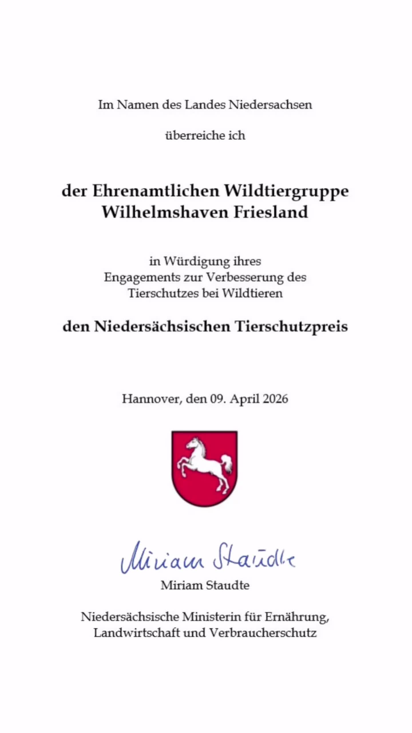 2026 hat der Niedersächsische Tierschutzpreis das Engagement im Bereich Wildtierschutz geehrt